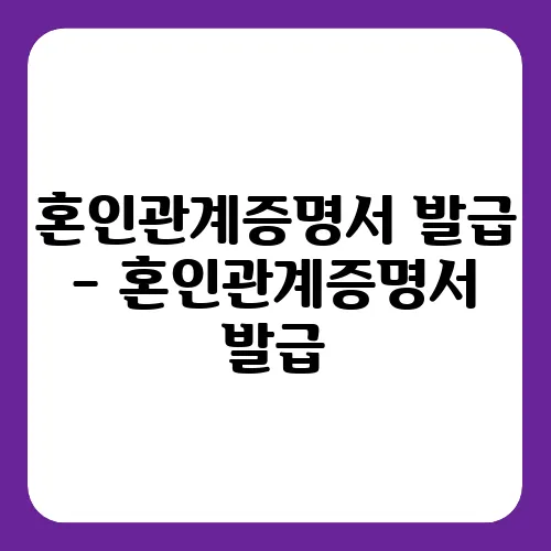 혼인관계증명서는 결혼 상태를 명확하게 보여주는 서류로, 특히 법적인 절차와 관련하여 매우 중요합니다. 이 서류는 때때로 은행, 보험사, 정부기관 등에서 요구됩니다. 혼인관계증명서 발급 절차를 알아두는 것은 미래에 불필요한 번거로움을 줄일 수 있는 좋은 방법입니다. 결혼식이 끝난 후, 서류 준비가 막막하다고 느낄 수 있지만, 차근차근 준비하면 어렵지 않답니다.